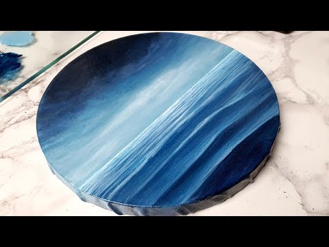 How to paint aesthetic seascape painting on circle/round canvas simple & easy acrylic painting tutorial for beginners 20*20cm ...